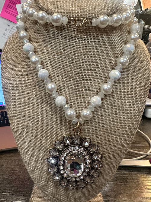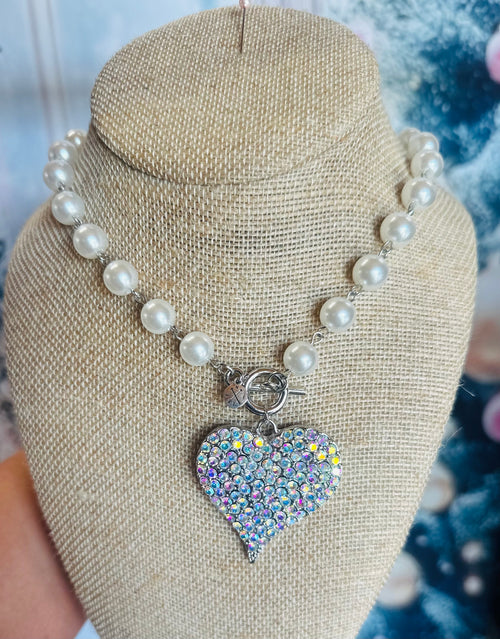 Pearls & Rhinestone Heart Necklace