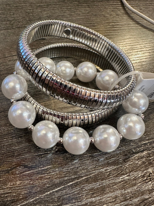 Pearl Silver Bracelet Set