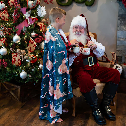 Boys Personalized Reindeer and Candy Cane Christmas Blanket