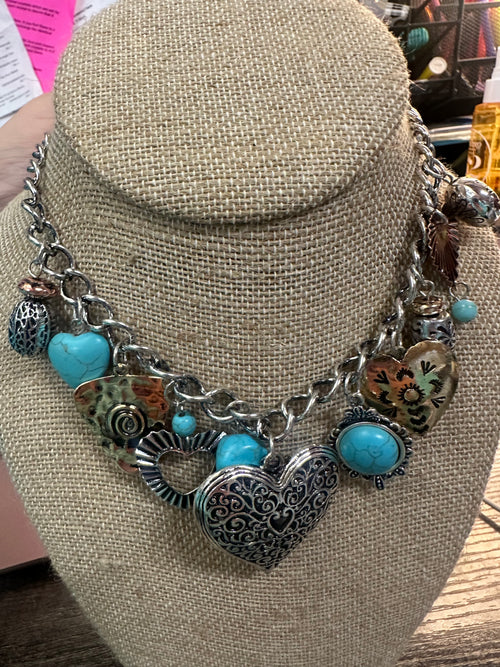 Clear & Taupe Mixed Heart Stretch Bracelet