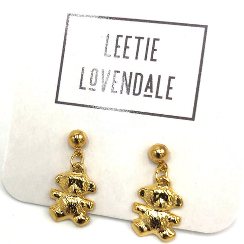 Gold Teddy Bear Deadstock Stud Earrings