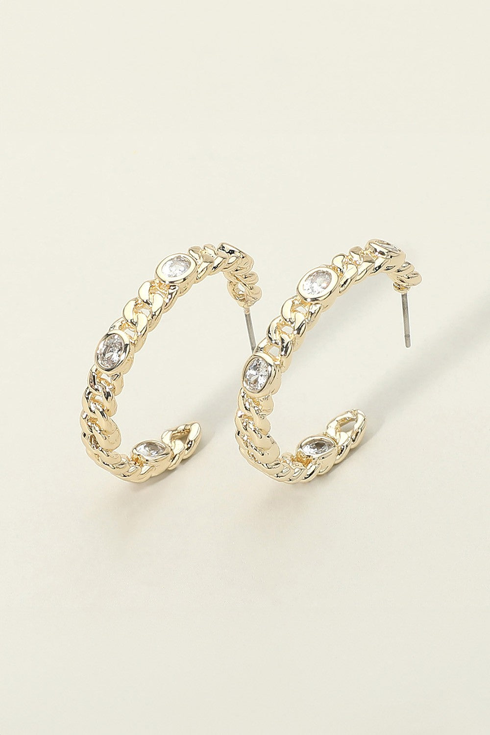 Size : 1.2" X 1.2" X 0.2" Post Back Stylish chain-inspired hoop earrings accented with sparkling cz crystal details for a refined yet modern look. Designed to elevate everyday outfits or complement evening styles, these hoops offer a balanced mix of elegance and edge, making them a versatile choice for trend-forward accessory collections. CZ Cubic Zirconia Gold Dipped 14K Gold Plated Oval CZ Stone Accent Chain Hoop Earrings