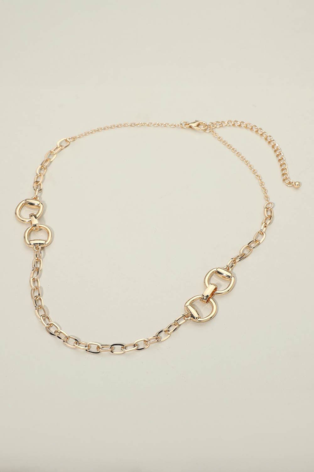 Necklace Size : 16.5" + 6.25" L Decor Size : 0.6" L Stylish link chain necklace featuring bold accent links for a modern yet timeless look. Designed to elevate everyday outfits or complement layered styling, this versatile necklace works well for casual wear, office looks, or special occasions, making it an easy statement piece for any jewelry collection. Lead and Nickel Compliant Horsebit Link Chain Necklace