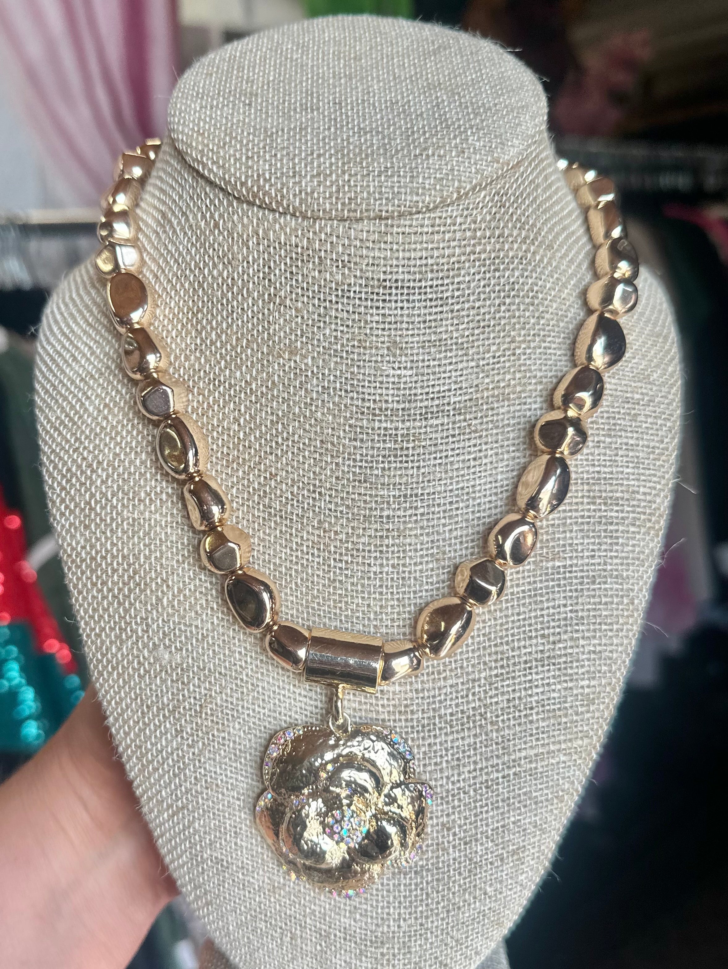 Hammered Gold Rose Necklace