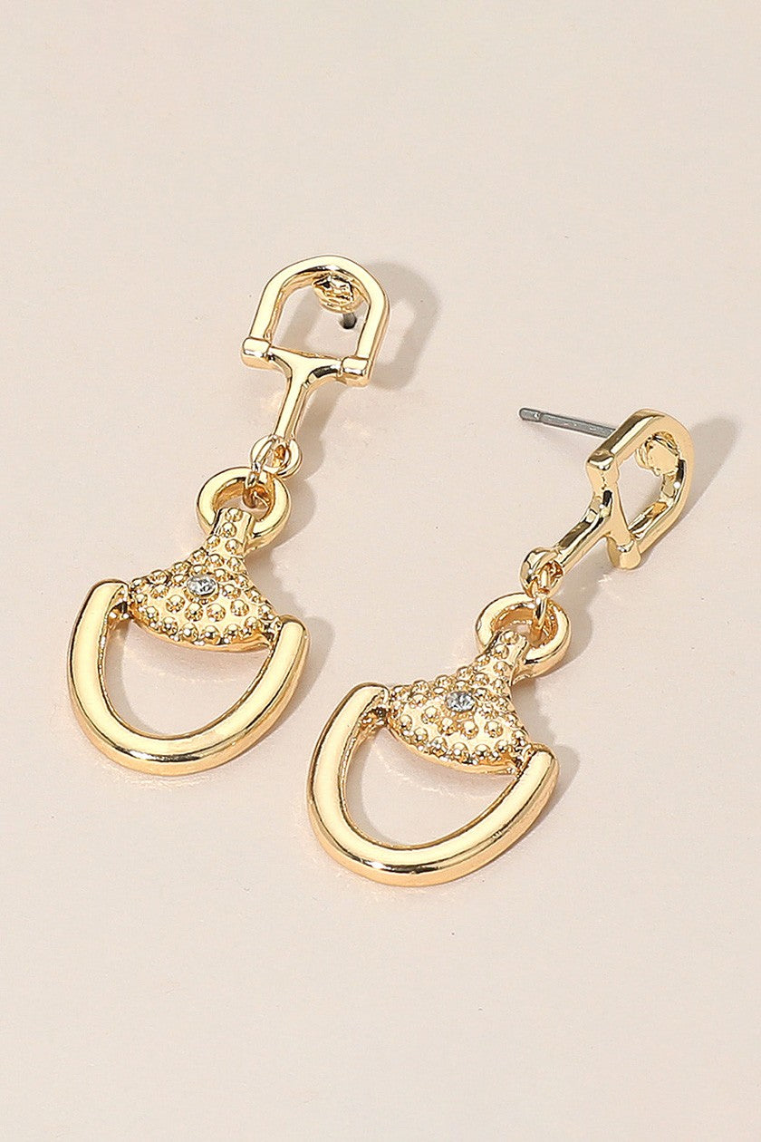 Horsebit Earrings w/ Rhinestone - Gold