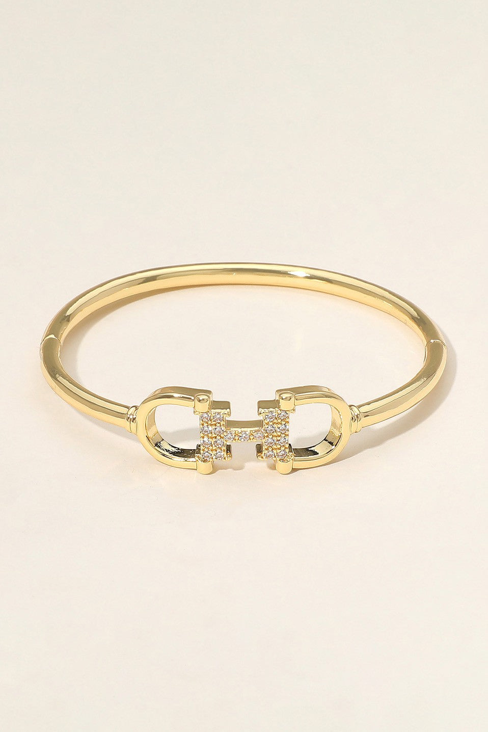 Size : 0.5" H, 2.5" D Hinged Closure A polished bangle bracelet featuring a horsebit-inspired centerpiece adorned with sparkling crystal accents. Sleek and versatile, this hinged bracelet adds a refined touch to any jewelry collection, perfect for stacking or wearing on its own. Lead and Nickel Compliant Crystal Accent Horsebit Bangle Bracelet