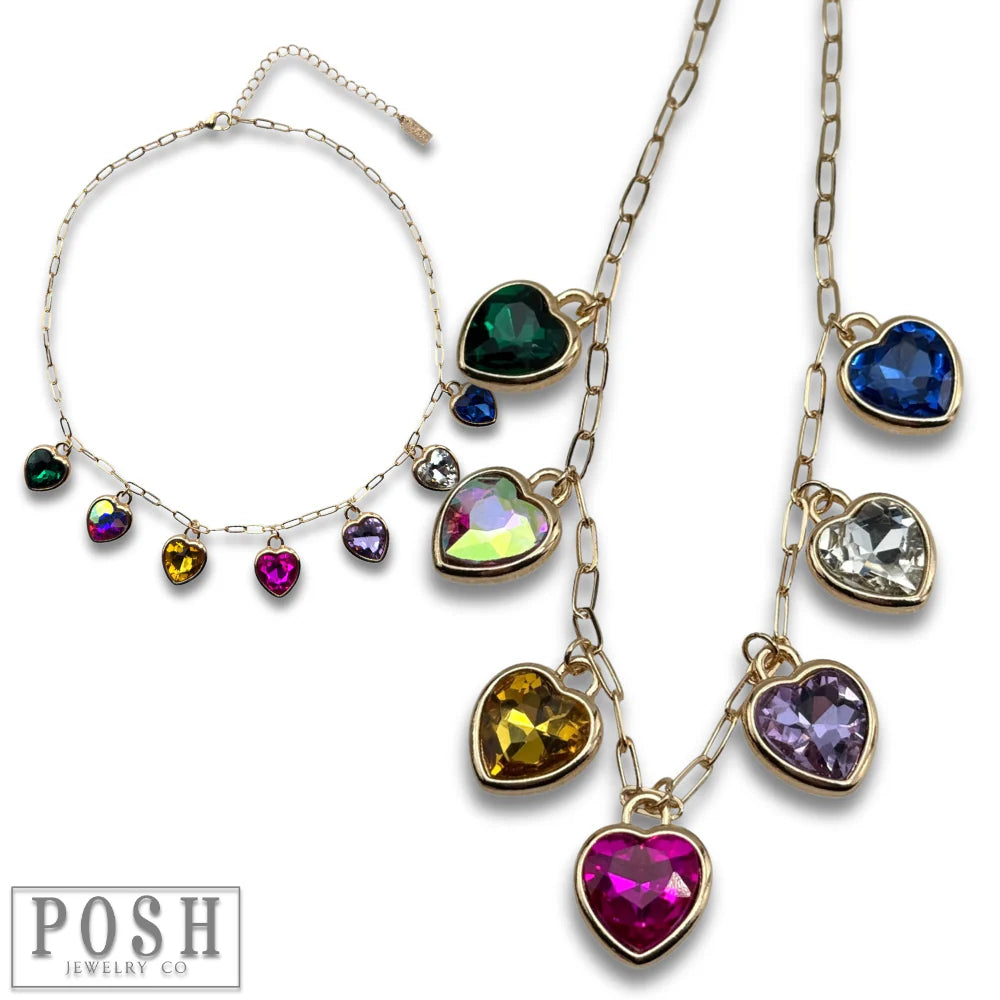 - Multi-color rhinestone heart charms