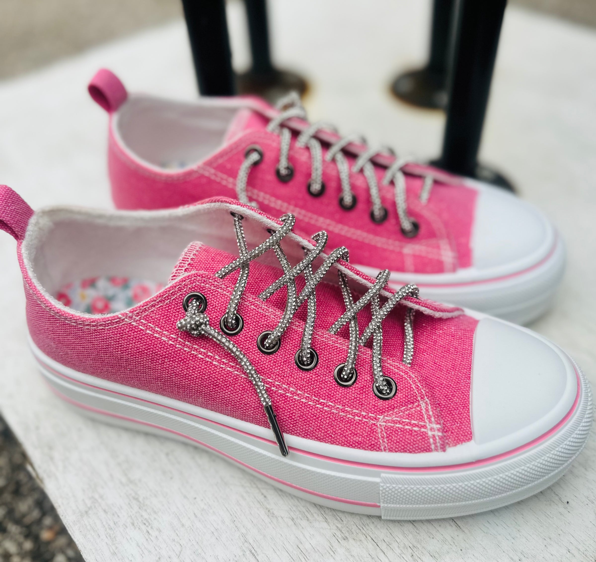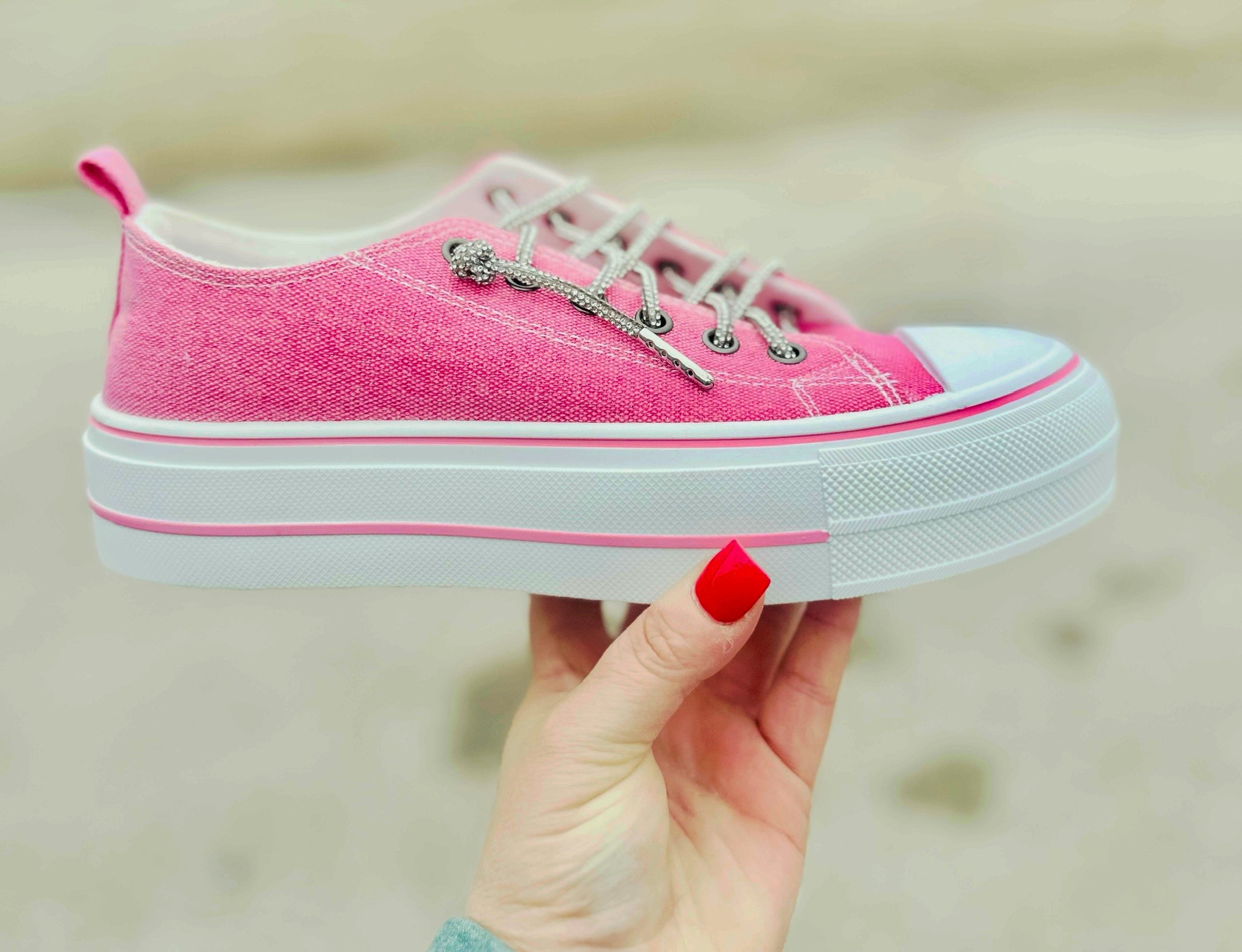 An update in our best glitter, slip on true to size sneaker. Double platform.