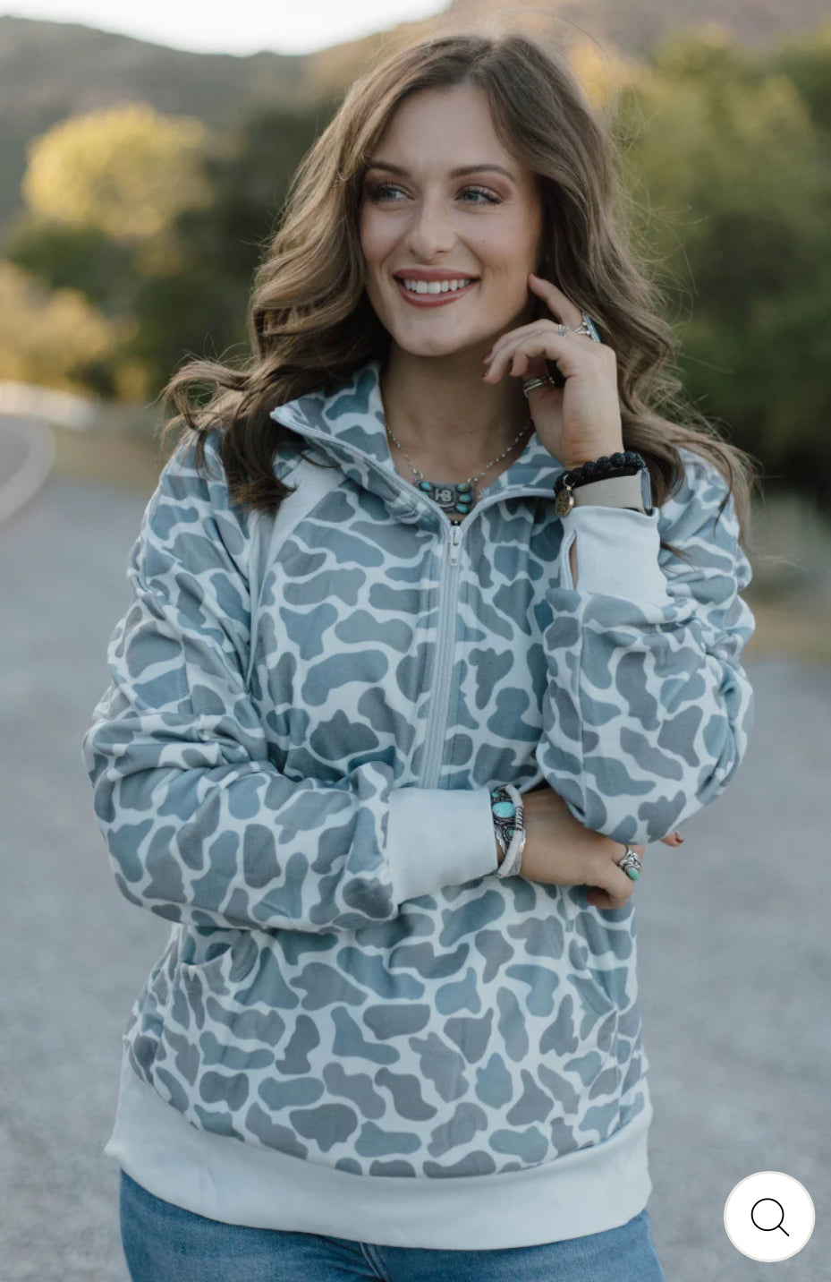 The Nothing In My Way Pullover blends style and comfort with its distinctive gray and cream camo design crafted from two different materials. This unique combination not only adds texture and visual interest but also ensures a versatile feel, perfect for layering or wearing on its own. Durable yet soft, it offers a comfortable fit that moves with you, making it an ideal choice for staying confident and comfortable no matter where your day takes you.