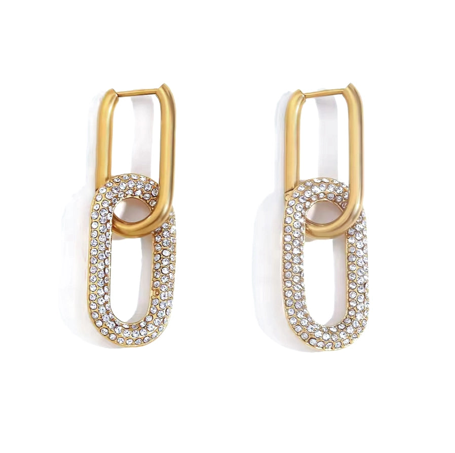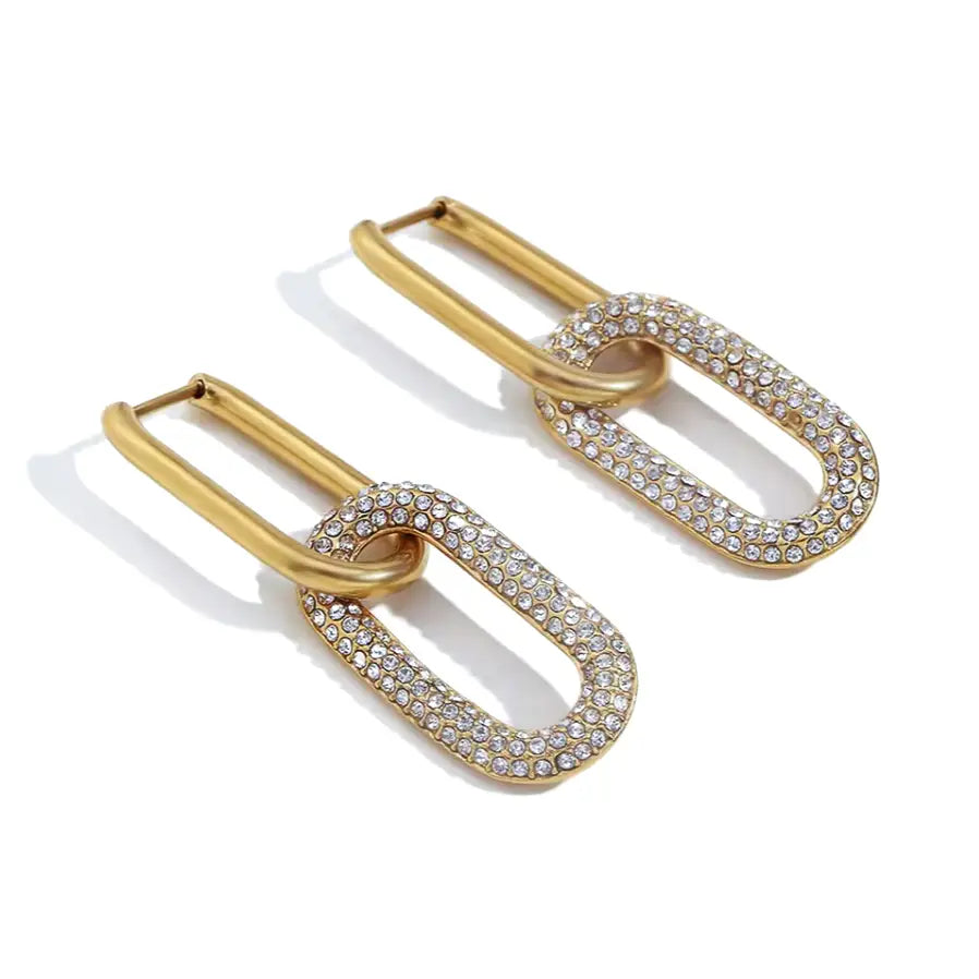 Details Stainless Steel Water resistant / Tarnish free Lead & Nickel free Elongated gold links paired with a glowing pavé oval for a sleek, modern statement. Water-resistant.