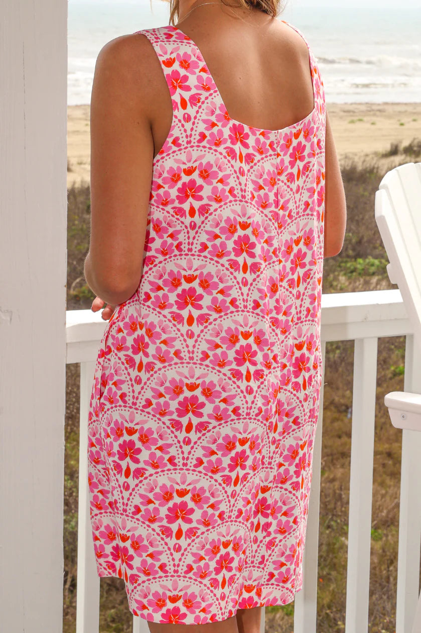 Get ready to bloom this summer in the Sunlit Blossoms Sleeveless Dress! This delightful piece showcases a vibrant pink floral pattern that captures all the joy of the season. The elegant square neckline adds a touch of sophistication, while the short hemline keeps you cool and comfortable when temperatures rise. Whether you're heading to a picnic, brunch date, or evening stroll, this dress brings instant sunshine and botanical charm to your warm-weather wardrobe.