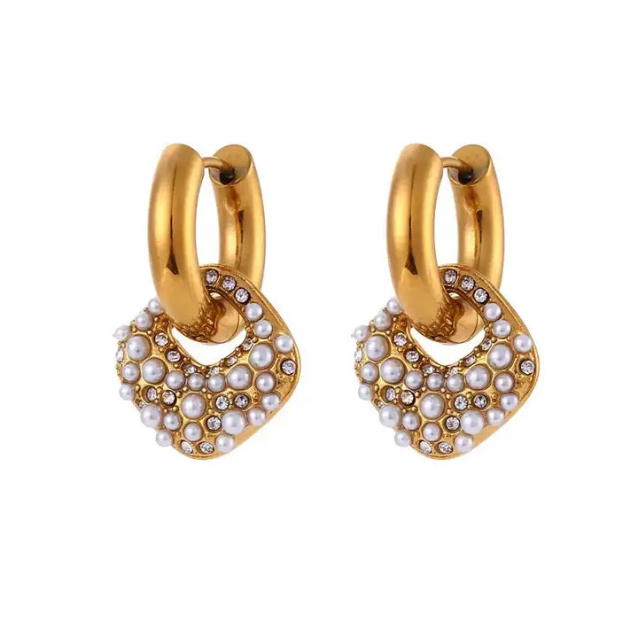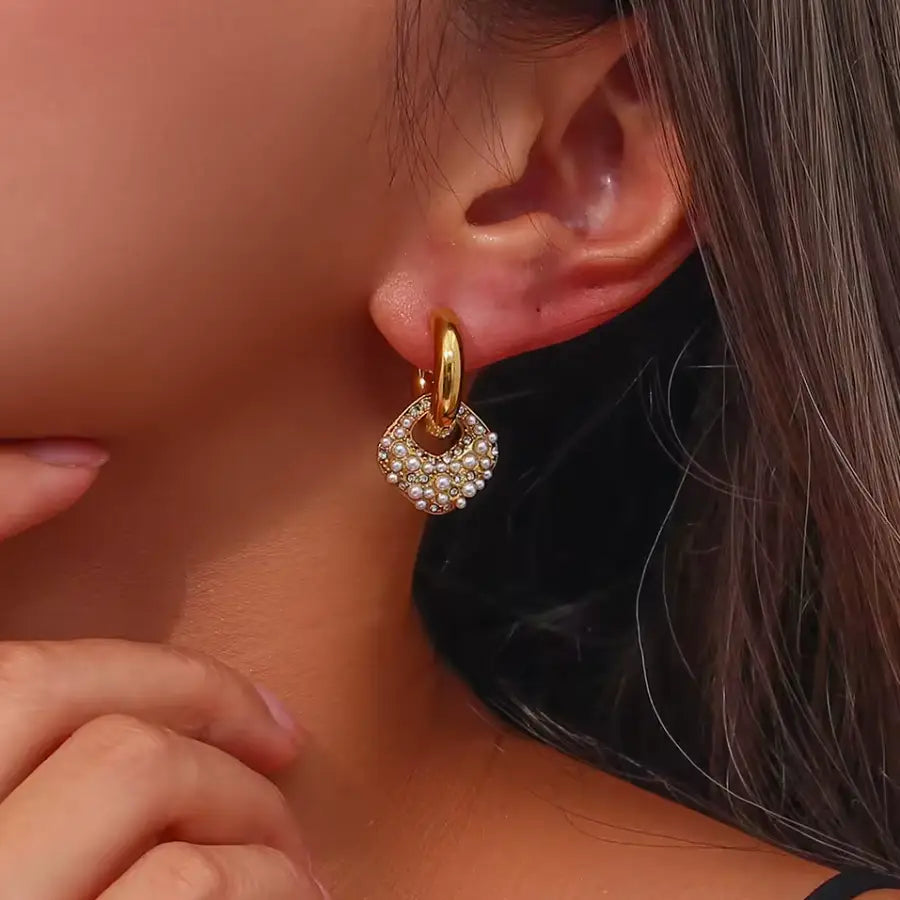 Details Stainless Steel Water resistant / Tarnish free Lead & Nickel free Polished gold hoops paired with pearl-and-CZ stones that shine from every angle. A chic, feminine statement. Water-resistant.