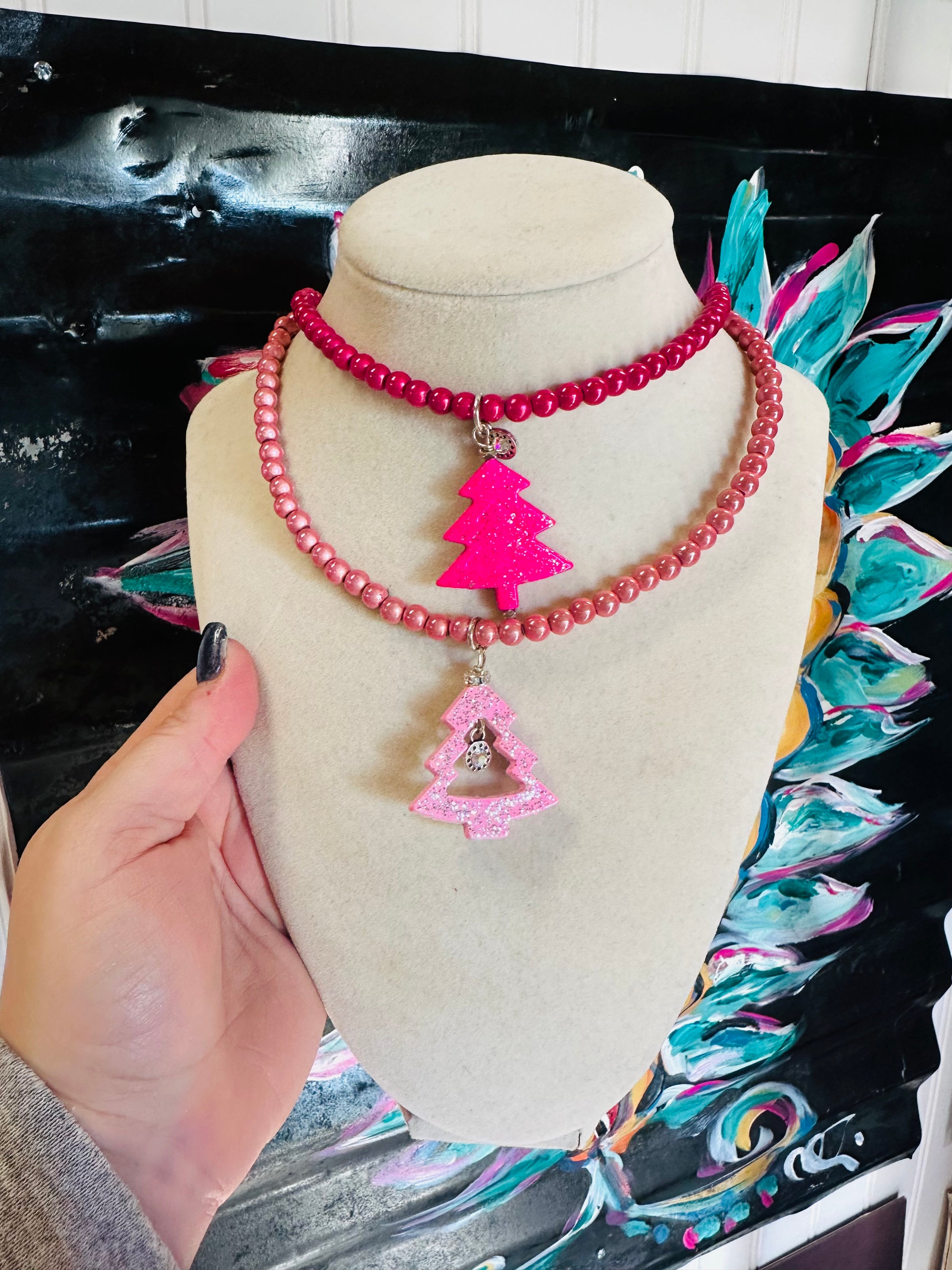 Pink Christmas Tree Necklace