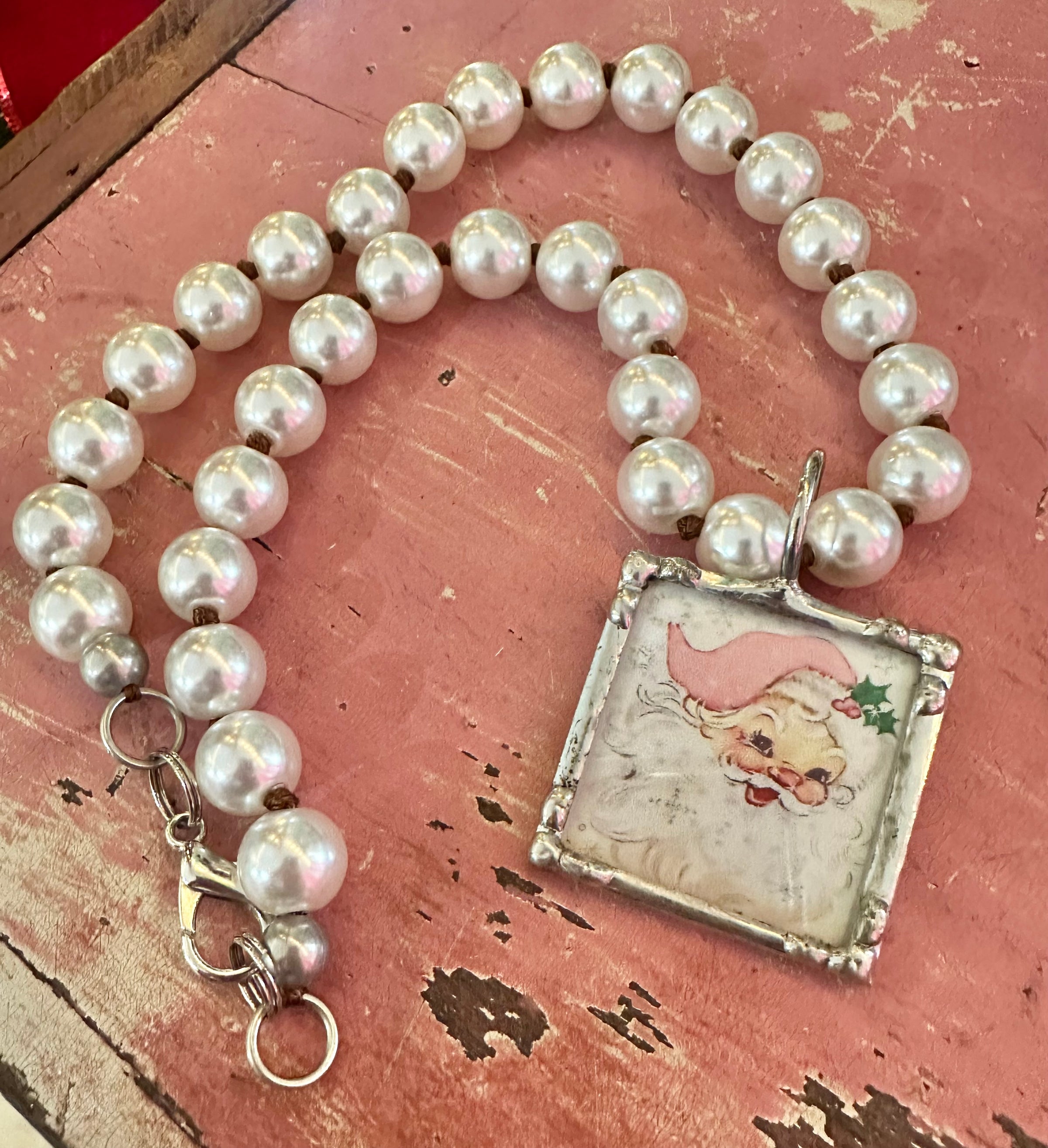Pink Pearl Soldered Santa Necklace